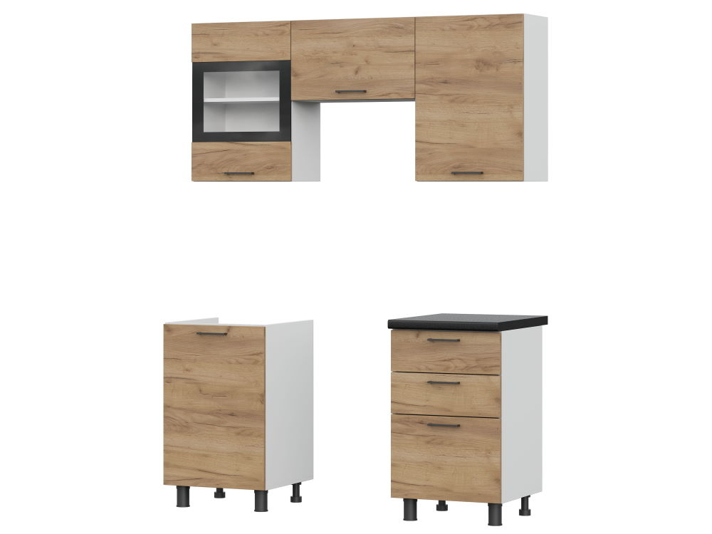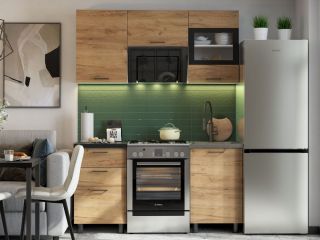 Описание Коллекция Аризона - это самый модный на сегодня дизайнерский тренд soft loft в интерьере вашей кухни. Броский, незабываемый, неординарный. Это сущая благодать для тех, кто устал от тесных хрущевок, стен и ограничений. В этой коллекции скупые черты лофта смягчаются сложным древесным декором состаренного дуба , и обрушивают на нас максимальный контраст белого корпуса и черных элементов в виде столешницы, опор, кромок, ручек. Коллекция Аризона - комплексное современное решение обустройства кухонной зоны! При изготовлении Коллекции Аризона используется ЛДСП ведущего мирового производителя Kronospan двух декоров -дуб Крафт и Белый. Плита ЛДСП. используемая при производстве этой коллекции мебели, произведена по специальному заказу концерном Kronospan с учетом повышенных требований к материалу. Она имеет более высокую плотность, позволяющую избежать при распиле, кромлении и сверловке сколы. Мебель, изготовленная из этого материала, легко переносит повторные сборки и имеет жесткую конструкцию. ЛДСП Дуб Крафт - двойная оригинальность дизайнерского рисунка древесины дуба выполнена в теплых золотистых тонах с элементами рассыхающихся темных трещин и сучков. Натуральная объемно-пористая структура покрытия многократно усиливает сходство с натуральным деревом. Визуальная глубина дополняется тактильными ощущениями , как от прикосновения к матовому полированному шелковистому срезу. ЛДСП Белый - это двойственная натура. С одной стороны он ассоциируется с чистотой хлопка, совершенством облака, а с другой - с холодом и отчужденностью Антарктиды. Искренне белый цвет опитмален по комбинаторике с любым декором и текстурой. Матовый шелк мелкозернистой шагрени углубляет ощущения сложности восприятия этого цвета. Столешницы, входящие в комплектацию Коллекции Аризона, закромлены по всему периметру распила кромкой толщиной 0,4 мм и шириной 38 мм, выполненной из первичного АБС пластика черного матового цвета. Такая обработка позволяет обеспечить защиту материала от разбухания в агрессивной влажной среде и обеспечивает долгий срок службы кухонного гарнитура. Столешница декора Черный мрамор изготовлена на основе древесно-стружечной плиты, покрытой слоистым пластиком. Столешница выдерживает большую нагрузку, а декоративный пластик гигиеничен, легко очищается и является экологически чистым материалом. Поверхность столешницы устойчива к ударам, к воздействию бытовой химии, кислотам, к солнечному УФ излучению (сохраняет цвет). Пластик столешницы имеет повышенную термо- и влагостойкость. Декор Черный мрамор - это цвет роскоши, утонченности, цвет черной пелены ночи. Он является противоположностью белого. В нем кроется бунт, тайна, неизвестность. Столешница декора Черный мрамор имеет приглушенный матовый шелковый отлив, сопряженный с шероховатой фактурой, делающий черный цвет еще более глубоким и бездонным. При изготовлении кухни Аризона используются прозрачные стекла прямоугольной формы толщиной 4мм. По периметру стекла нанесена фотопечать в виде рамки глубокого черного цвета. Так же стекло обработано еврокромкой, что исключает возможность случайного пореза об открытые края стекла. Стекла вклеиваются во фрезерованные пазы сразу на фабрике высокопрочным клеем, поэтому створки со стеклянными элементами поступают в уже собранном виде.