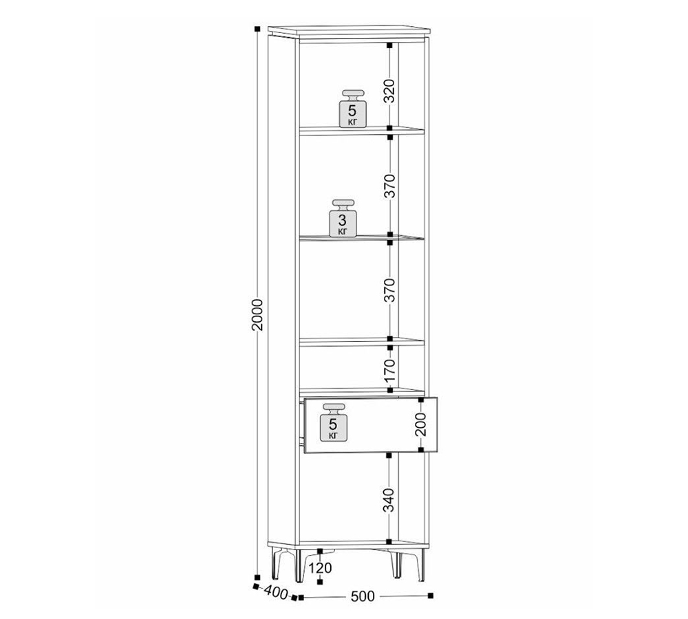 Высота ножек 12 см. Ручки металлические. Полки: ЛДСП.