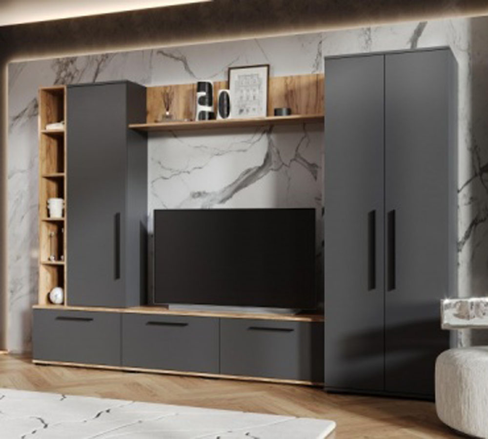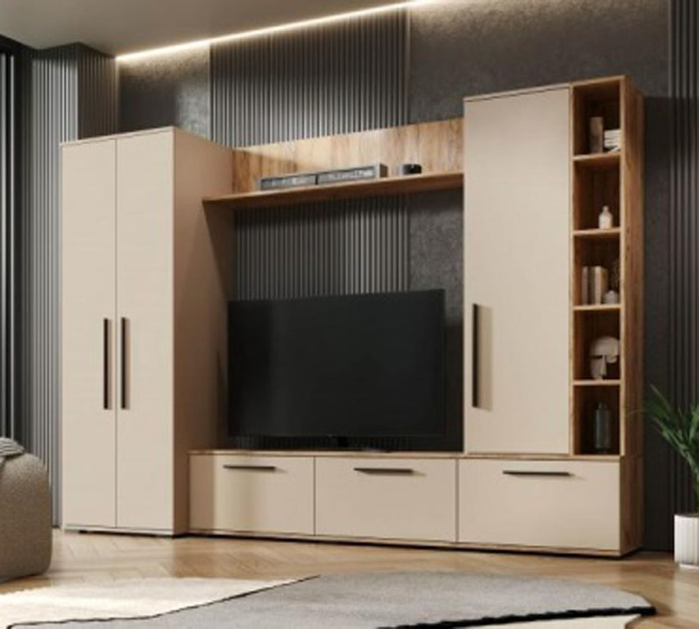 Гостиная Леванте - современная, вместительная стенка со шкафом для одежды.
