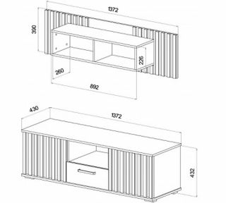 Габариты ТВ тумбы: 1372Ш х 420Г х 432В мм