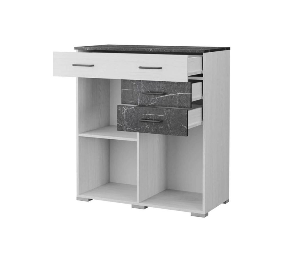 Размер (Ш*В*Г)868 х 1000 х 435 мм. Комод Теана — это вместительное и практичное решение для хранения. Он оснащен выдвижными ящиками и удобными нишами за дверцами. Направляющие роликовые.