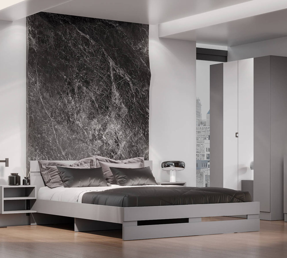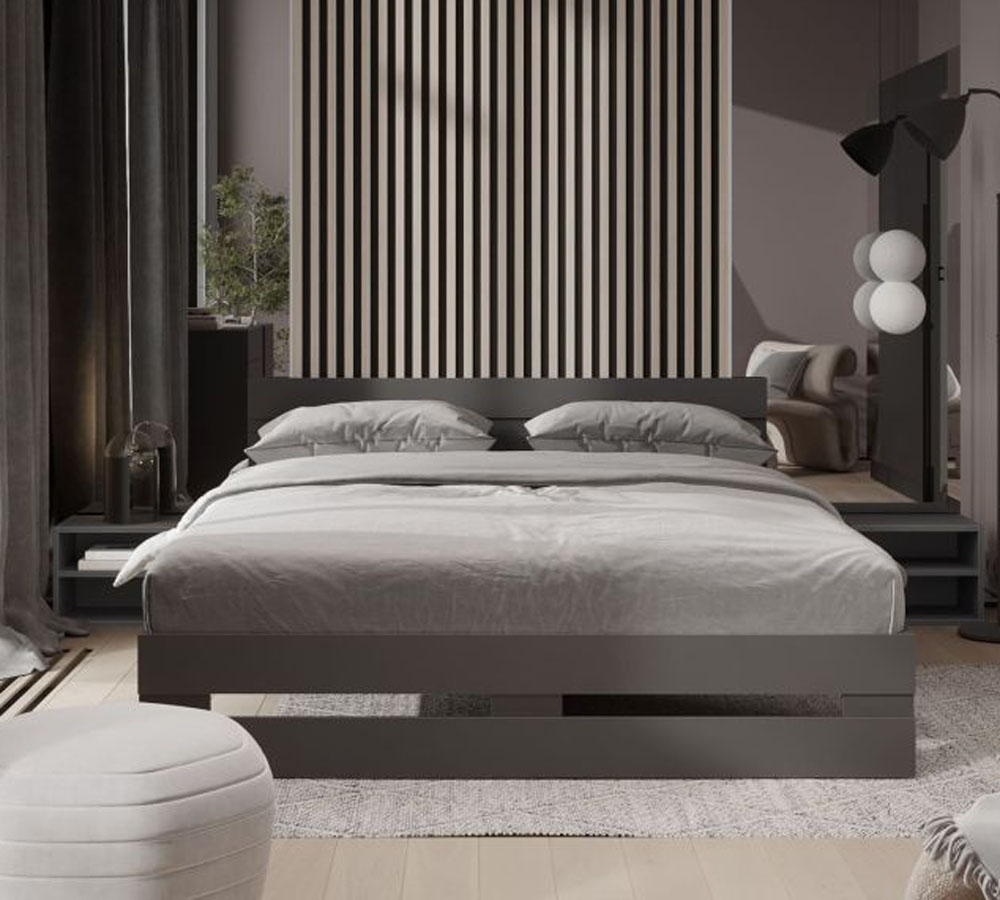 Решетчатое изголовье и нижний щиток, гарантирующие особую прочность и устойчивость. Жесткость этих визуально легких конструкций достигается вертикальными и горизонтальными вязками под основанием кроватей, вертикальными и горизонтальными опорами щитков.