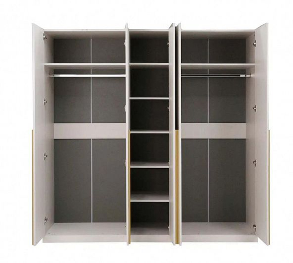 Благодаря пяти дверям, этот шкаф обладает большой вместительностью и позволяет разделить хранение на несколько функциональных зон.