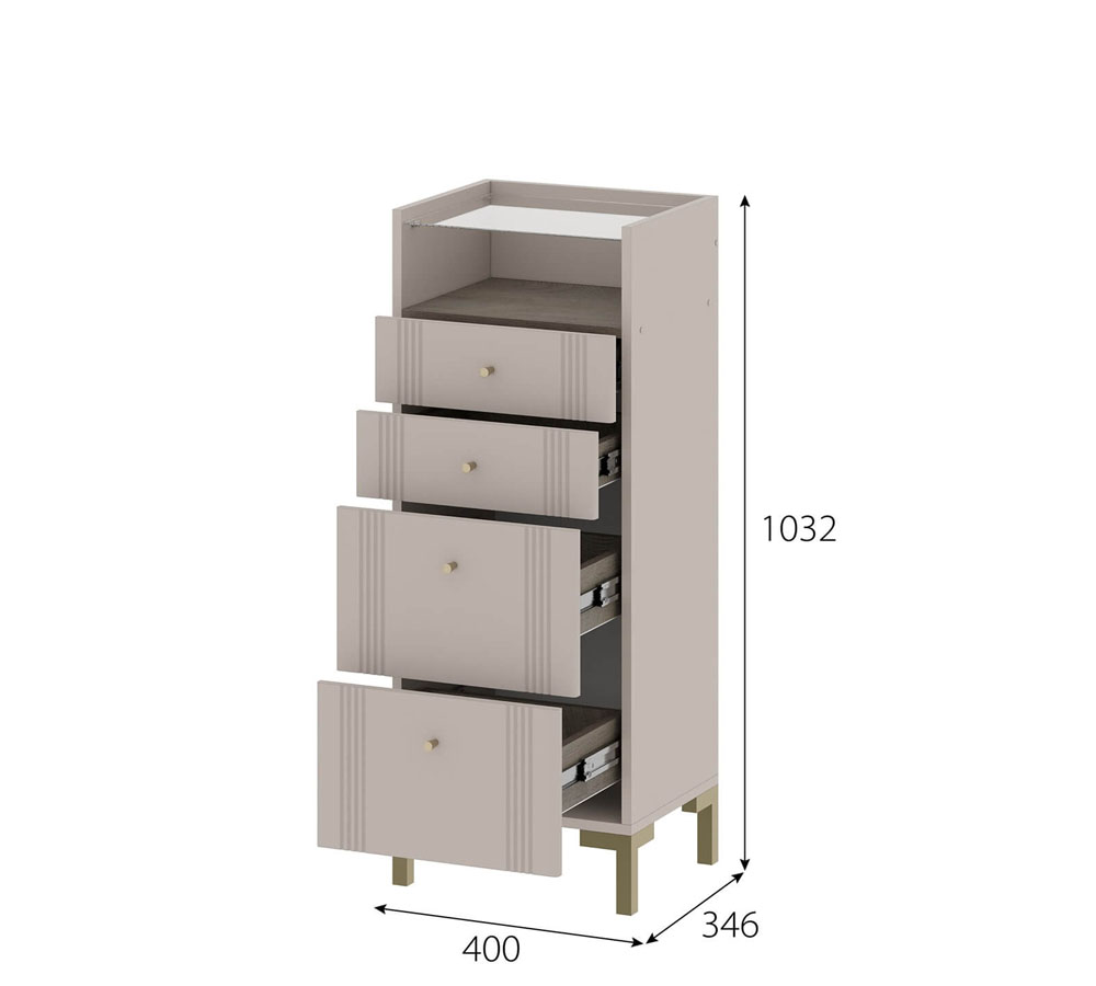 Комод 4 ящика Одетта - Меланж/Дуб Эндгрейн/Стекло. Размер (ШхГхВ), мм: 400х346х1032.