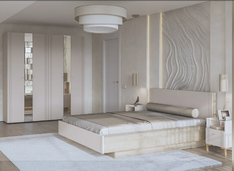 Спальный гарнитур, представленный на первом изображении, состоит из следующих модулей: