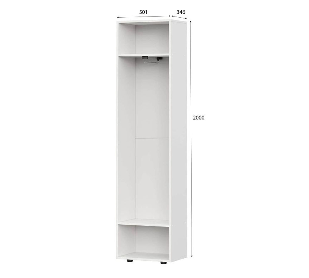 Размер (ШхВхГ)501 х 2000 х 346 мм.Материал ЛДСП 16мм, Белый