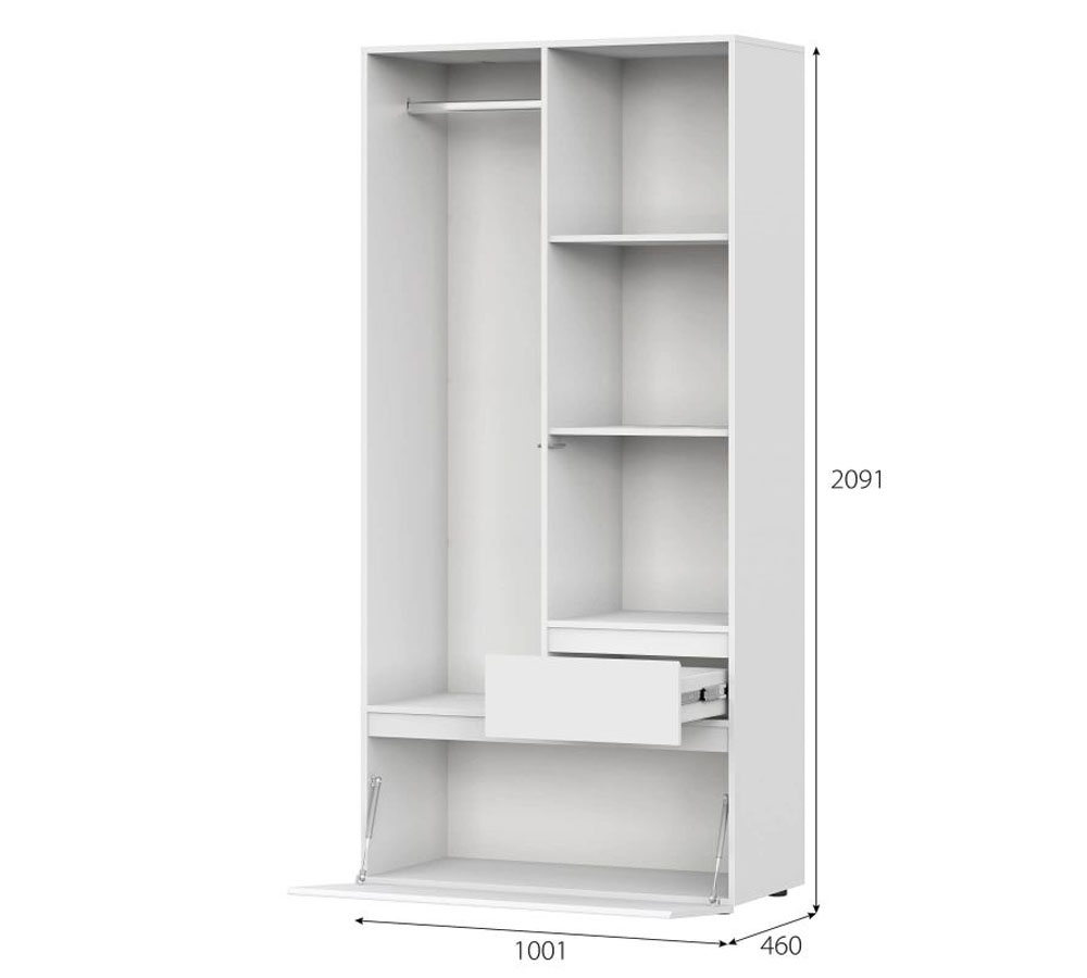 Размер (ШхВхГ)1001 х 2091 х 460 мм.Материал ЛДСП 16мм, Белый