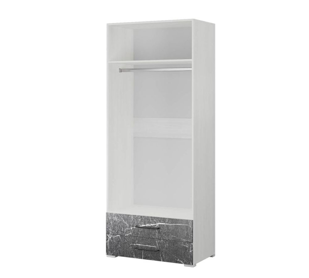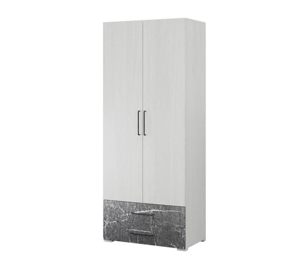 Размер (Ш*В*Г)900 х 2200 х 500 мм. Шкаф двухдверный Теана станет универсальным вариантом для хранения одежды, вещей в сложенном виде и белья в спальной комнате. Имеет продольную штангу для одежды на плечиках, 2 вместительных выдвижных ящика и полку-антресоль. Материал: корпус и фасады - ЛДСП.