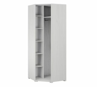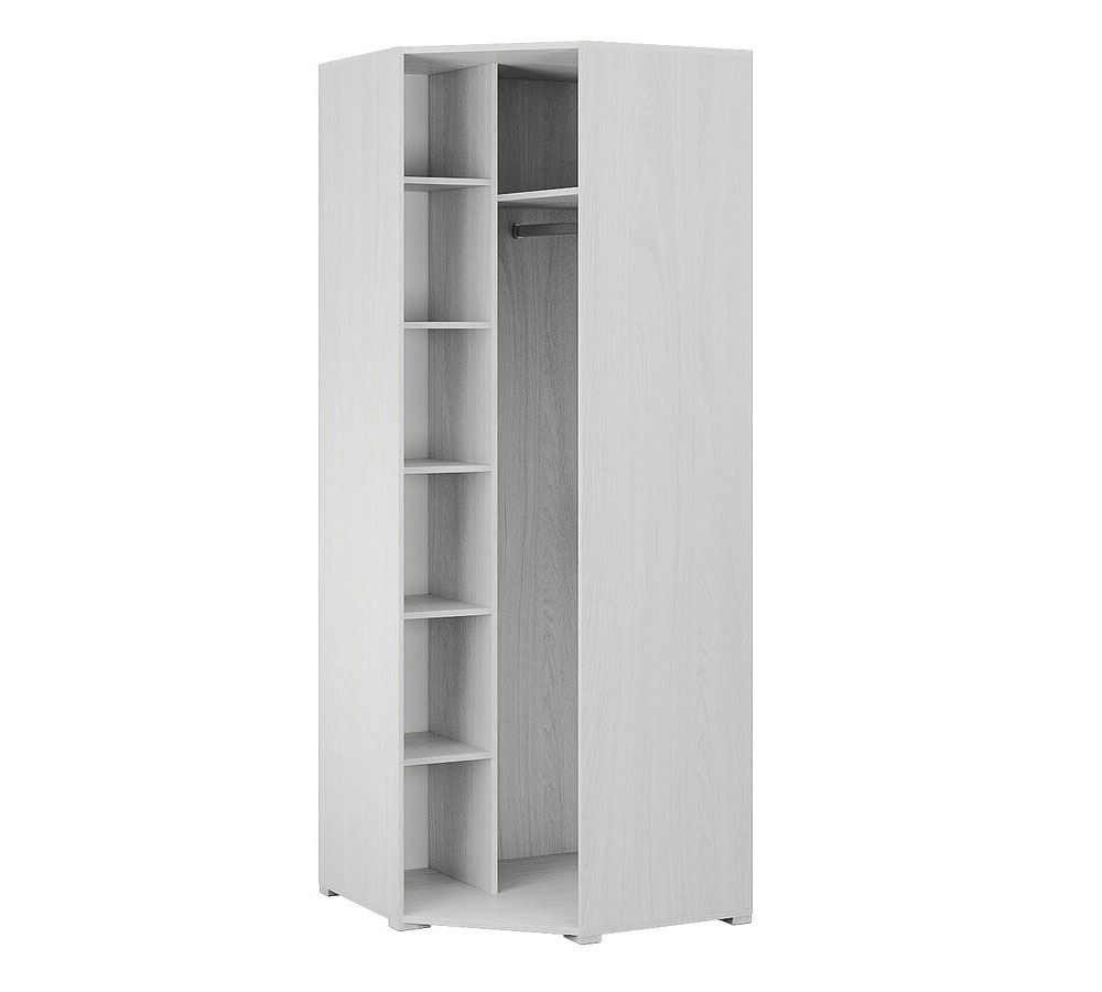 Размер (Ш*В*Г)820 х 2200 х 820 мм. Угловой шкаф из коллекции Теана — это стильное и функциональное решение для хранения одежды и белья в спальне. Он компактный, но вместительный. Внутри есть штанга для вешалок и полки для сложенных вещей. Угловая конструкция шкафа позволяет эффективно использовать свободное пространство в комнате.