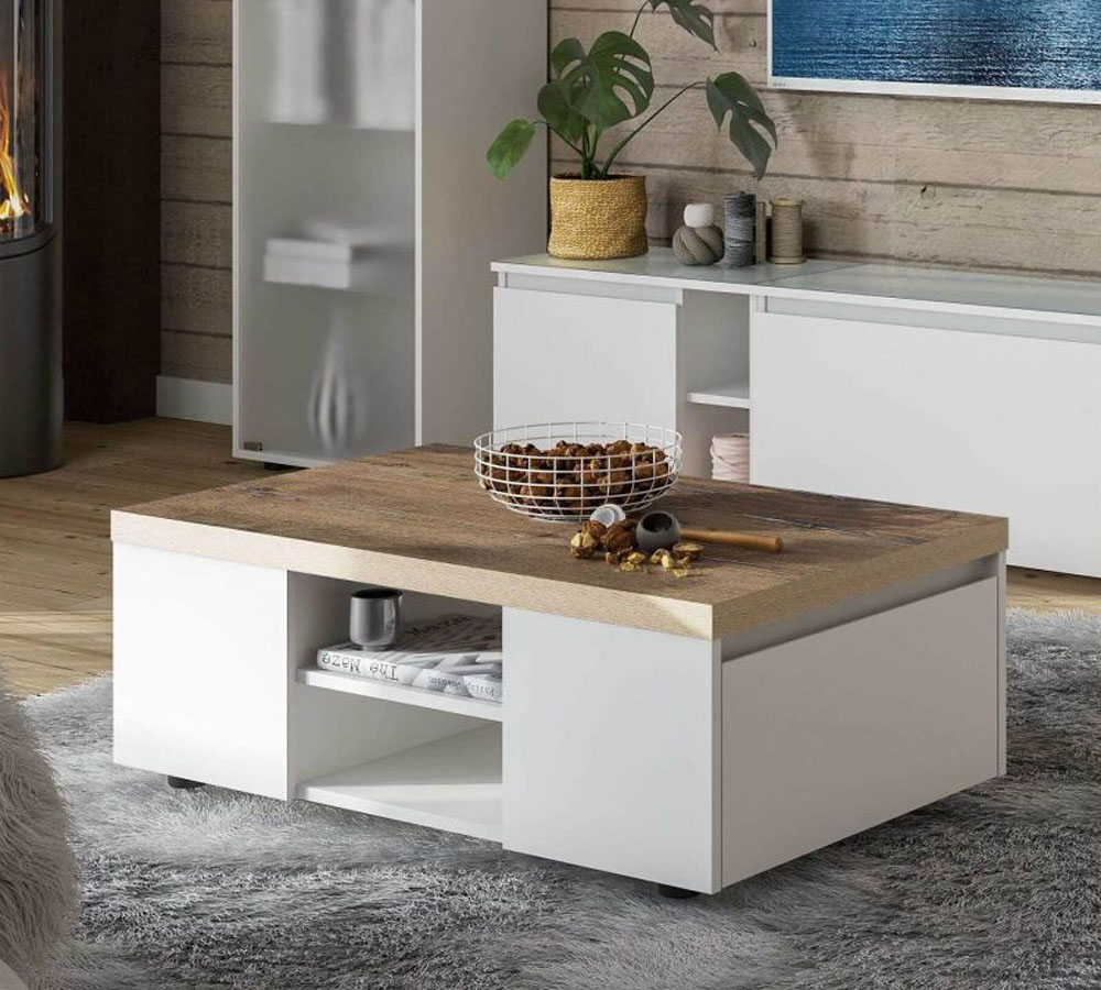 Размер (ШхВхГ)950 х 339 х 580 мм.Материал ЛДСП 16мм, Белый. Стол журнальный "Одри" - Два объемных и вместительных выкатных ящика на высокопрочных шариковых направляющих и открытое полочное пространство.
