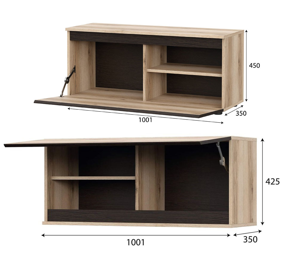 Габарит (Ш*В*Г) 1001 х 450 х 350 мм. в цвете Дуб Делано/Дуб Венге. Универсальная тумба, используемая как самостоятельный модуль, так и собираемая в сложные конструкции и комбинации с Комодом, Вешалкой с зеркалом и Тумбой со стеклом "Берген". Она устанавливается на пол, подвешивается к стене в прямом и в перевернутом виде.