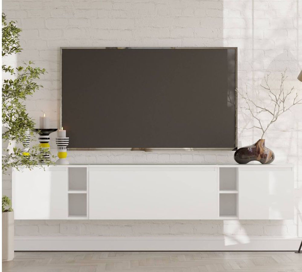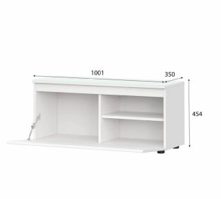 Модульная гостиная Одри это: Универсальная «Тумба», которая выступает как тумба TV, либо подвесная тумба. В базовой комплектации тумбы идут регулируемые опоры. При этом ее можно подвесить как с условием открытия створки сверху вниз, так и в перевернутом виде с открытием створки снизу вверх. Тумба покрыта матовым стеклом «сатинат» с фацетными гранями. Из нескольких тумб, прикроватных тумб, можно собрать композиции комодов различных габаритов.