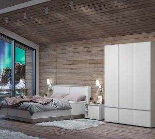 Главной особенностью коллекции «Одри» является большая двуспальная кровать «Кровать 1,6», которая стоит на утопленном подиуме. Этот подиум создает ощущение, что кровать парит в воздухе, что выглядит очень красиво. У кровати есть большое изголовье с двумя скрытыми ящиками, где можно хранить вещи, нужные для сна. В центре нижнего основания кровати находится большой выдвижной ящик с прочным дном.