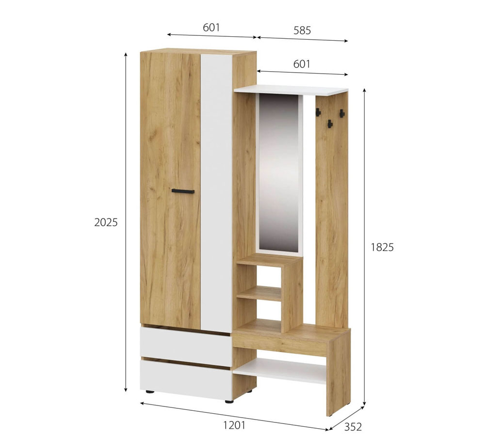 Вешалка с зеркалом АБРАУ (сборка на обе стороны)