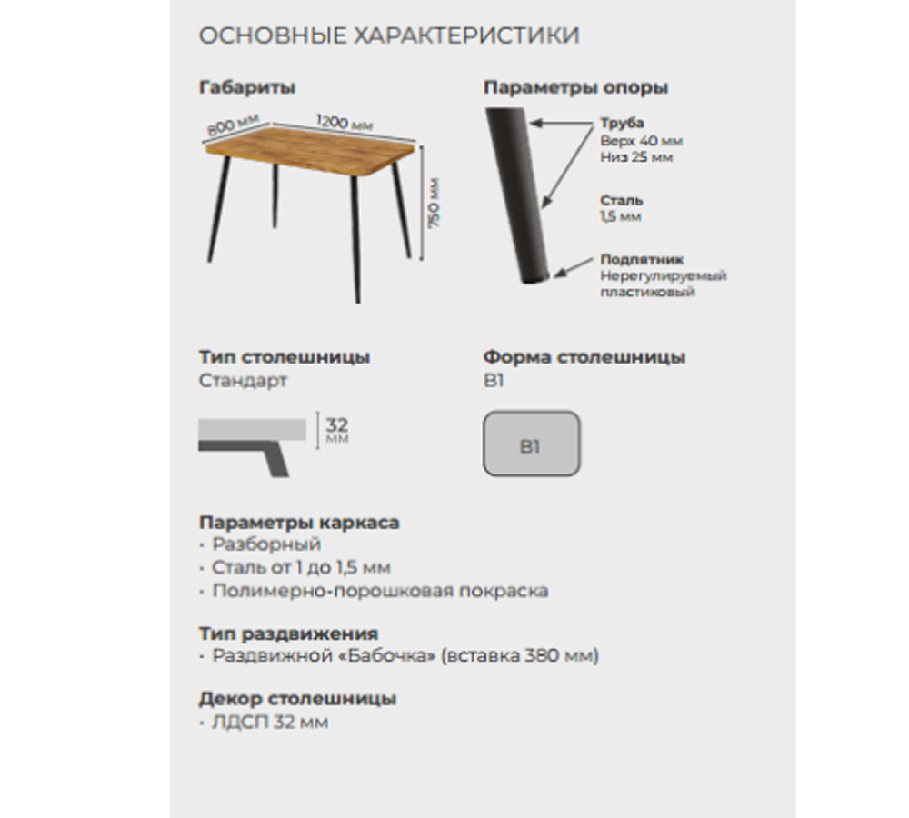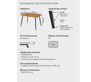 Каркас: разборный, металлическая основа в пленке ПВХ в цвет столешницы.